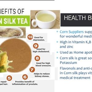 Corn silk tea helps the body release excess water, making it useful for managing bloating and fluid retention. By increasing urine flow, it supports the cleansing of the kidneys and bladder and may help in cases of urinary tract infections, cystitis, prostatitis and inflammation of the urinary passages. Traditionally, corn silk has also been used to support prostate health, treat jaundice, improve appetite, lower blood pressure and soothe arthritis. Its vitamin K content historically made it useful for managing minor bleeding.