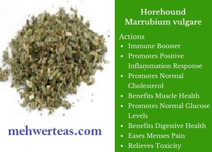 This herbal tea is believed to support a variety of wellness needs. It may help ease upper respiratory issues, promote smoother breathing, support digestion, reduce acid reflux, calm digestive or uterine cramps and counter water retention due to its diuretic nature. Some people also use horehound to support healthy cholesterol or blood sugar levels. It is generally safe for children but not recommended for pregnant women.