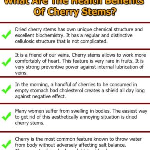 Their therapeutic uses extend further. Cherry Stems may help soothe fever, mild arthritis, and inflammation, and they are often included in herbal blends designed for calming the nerves or supporting overall vitality. The beverage made from these stems is naturally caffeine-free, making it a gentle daily drink.