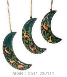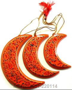These decorative crescents offer a blend of artistic flair and handmade charm, making them ideal for various décor environments. Crafted from recycled paper pulp and individually painted by Kashmiri artisans, each crescent features detailed patterns and vibrant artistic touches. Their lightweight structure makes them simple to hang in displays, seasonal arrangements, window decorations, themed interiors, or handcrafted gift bundles. The glossy lacquer finish enhances color richness and ensures the artwork remains protected over time. With sustainability and craftsmanship at their core, these crescents appeal to retailers, event stylists, interior designers, and curated gift suppliers seeking meaningful, hand-crafted décor pieces.