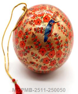 These hand-painted paper mache decorative balls are designed to elevate interior styling with cultural artistry and refined craftsmanship. Each piece is shaped and polished by hand before being painted with detailed patterns that reflect Kashmiri artistic traditions. Their smooth finish and durable lacquer coating provide a premium look suitable for a variety of decorating styles—minimalistic, bohemian, festive, rustic, or luxury retail themes. Lightweight and durable, they can be used to create focal points in decorative bowls, entryway displays, boutique setups, or commercial staging arrangements. With sustainable material origins and hand-finished detailing, these decorative balls offer an ideal option for large-volume buyers seeking unique artisan-crafted décor items.
