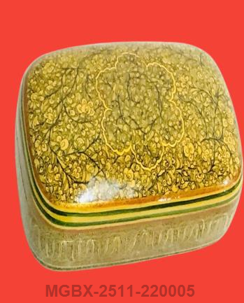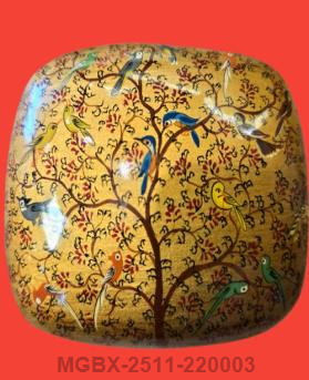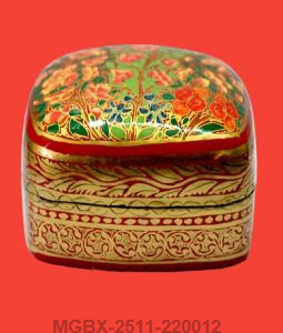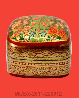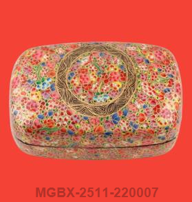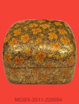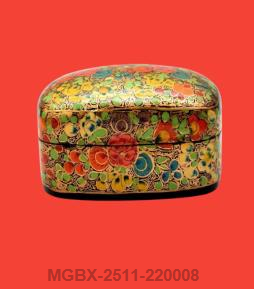 This selection of handcrafted storage and gifting boxes blends artistic design with functional craftsmanship. Each piece is shaped from recycled base material and finished with hand-painted detailing by skilled artisans, giving every box a unique character. The lift-off lid structure offers practical usability for jewelry, premium packaging, keepsakes, or interior décor. A glossy lacquer coating enhances visual richness while safeguarding painted patterns. Suitable for décor retailers, gift brands, lifestyle stores, and curated product assortments, these boxes provide a premium handmade touch with sustainable values.