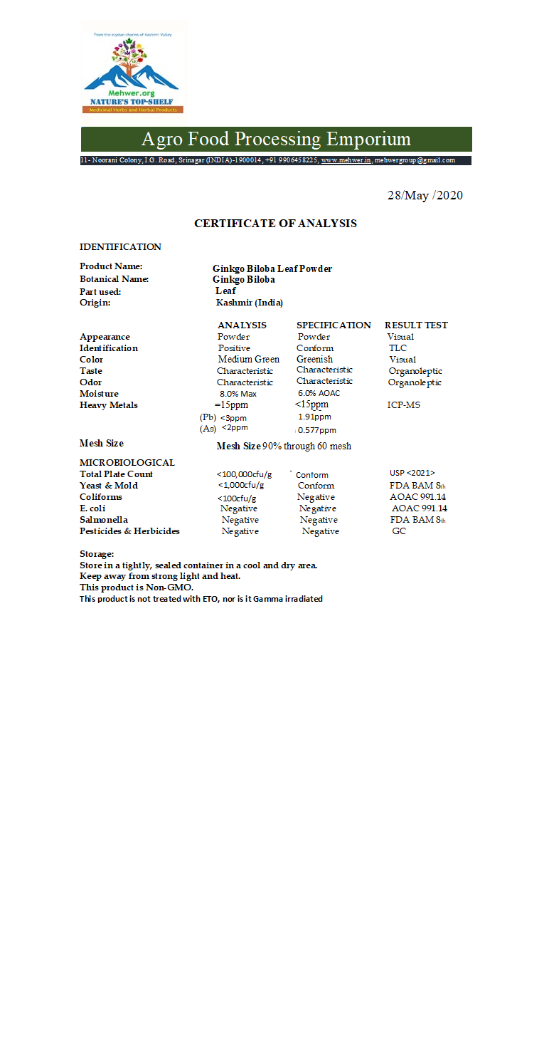 The well-known benefits often associated with Organic Ginkgo include: