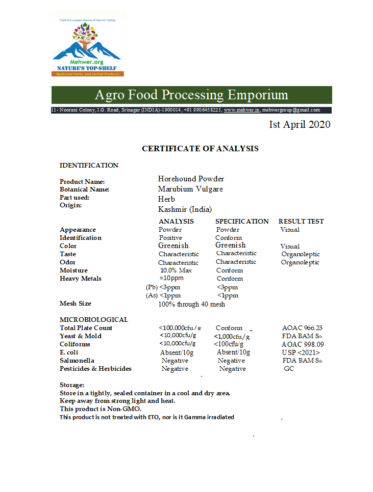 Organic Horehound, botanically known as Marrubium vulgare, is a classic herb with a long history of use in traditional medicine. Its reputation mainly comes from its ability to support respiratory health. This perennial mint family plant contains marrubin, a bitter compound believed to help loosen mucus, clear the lungs and calm persistent coughs. Because of this action, horehound has been used for generations to ease symptoms related to asthma, bronchitis, whooping cough and other upper respiratory issues.