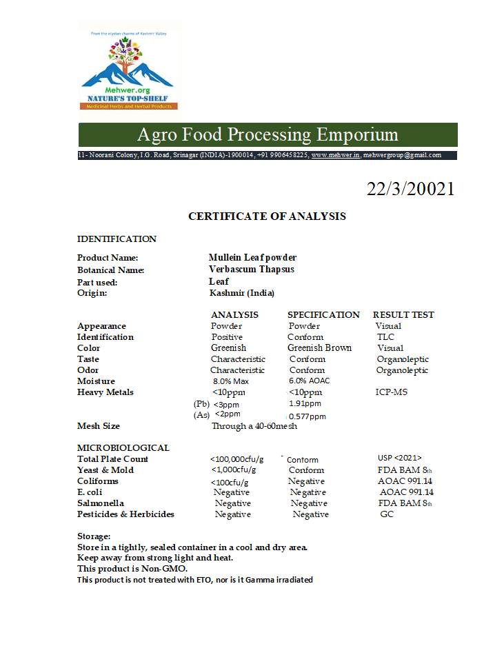 Mullein, known by numerous folk names including Aaron’s rod, Flannel plant, Velvet dock, and Wild ice leaf, is a medicinal herb whose flowers are primarily used for therapeutic purposes. This plant contains beneficial compounds such as saponins, flavonoids, iridoid glycosides, vitamin C, and minerals.