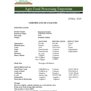 Organic Red Clover (Trifolium pratense) is a treasured wild herb known for its broad therapeutic benefits and rich nutritional profile. Harvested from the pristine grasslands and roadside meadows of Kashmir, this vibrant purple-red flower has been used for generations in herbal medicine. Its flower tops contain valuable compounds such as isoflavones, flavonoids and vitamins that support several systems of the body, making it one of the most versatile herbs in traditional wellness.