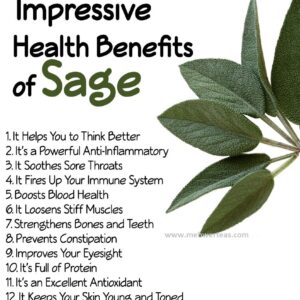 - Brain and Nervous System: Sage is known to improve brain function, calm nervous excitement, and aid conditions related to cognitive health.