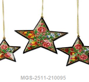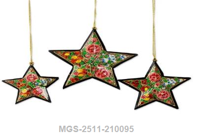 These premium handcrafted paper mache stars are designed to elevate decorative spaces with their detailed artistry and vibrant colorwork. Each star is shaped and painted by master Kashmiri artisans who specialize in traditional brush techniques and intricate ornamentation. Their lightweight design ensures effortless hanging on festive garlands, home walls, boutique displays, windows, or event décor backdrops. Protected with a glossy lacquer finish, these stars retain their vivid colors and fine detailing for long-term decorative use. Made from eco-friendly paper pulp and natural adhesives, they embody sustainable craftsmanship while providing a luxurious, handcrafted aesthetic. Perfect for retailers, designers, decorators, and gift suppliers, these stars enhance both everyday interiors and festive setups with elegance and cultural charm.